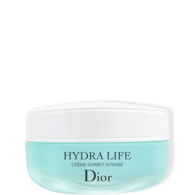 La crème hydratante Dior Hydra Life Crème Sorbet Intense nourrit la peau et apaise les sensations d’inconfort.