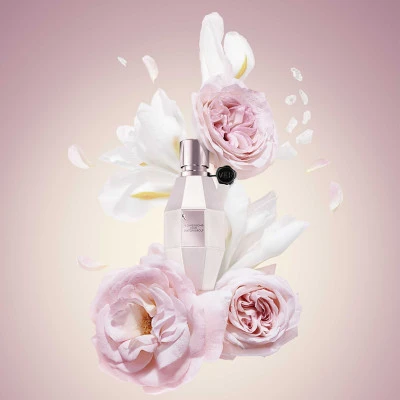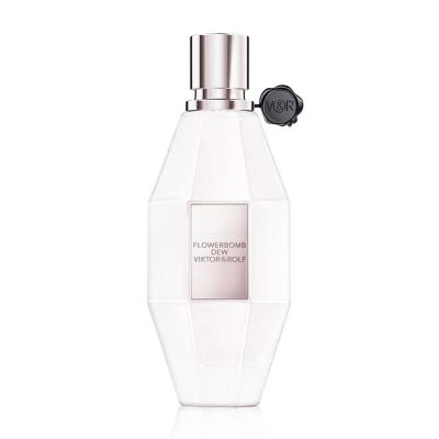 Reprenant les lignes de la création de nuit FLOWERBOMB MIDNIGHT, FLOWERBOMB DEW s’habille d’une robe blanche transparente légèrement nacrée et rosée.